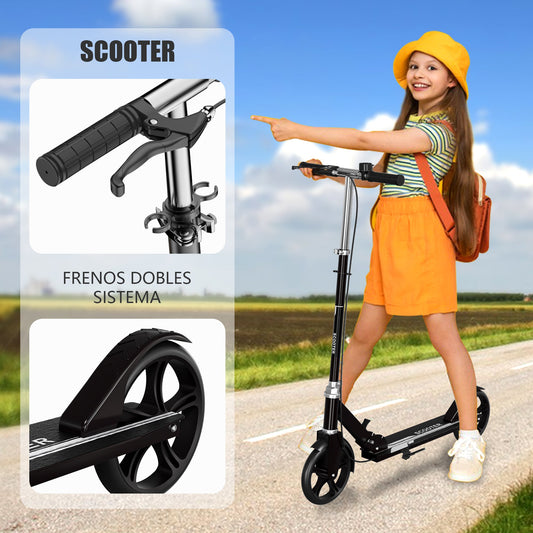 Patin Scooter con Freno De Mano Plegable Ajustable para Niños y Adultos Color Negro