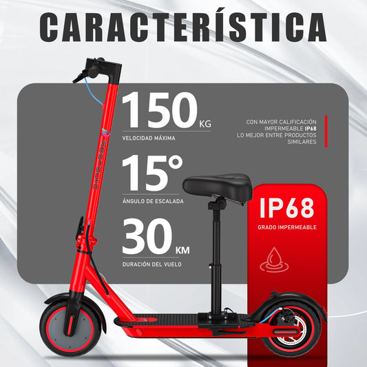 Patineta Eléctrica Plegable Inteligente Color Rojo- El Compañero Omnipotente para el Desplazamiento Urbano