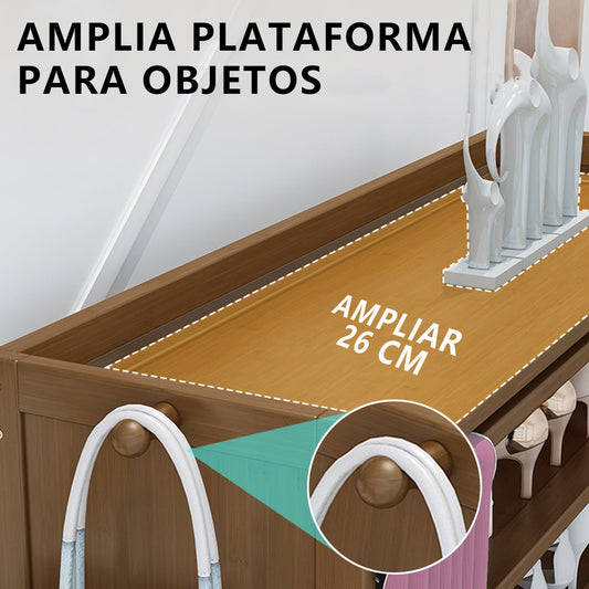 Zapatero Multifuncional Estante Para Zapatos Madera 6 Pisos Cortina En Bamboo 42 Par 107*98*28cm
